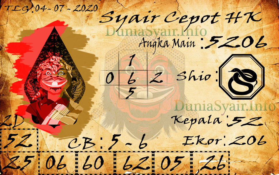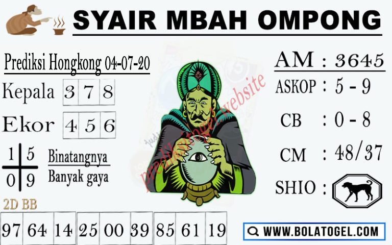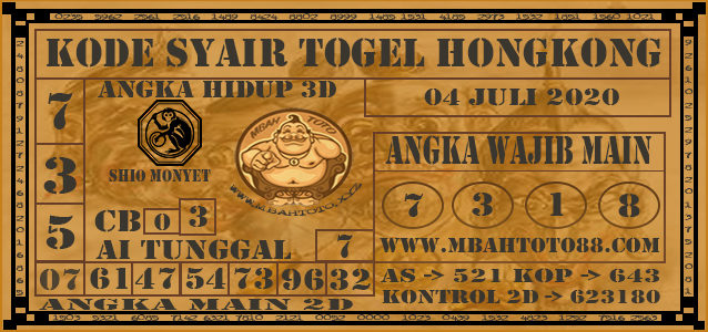 Dalam meracik Prediksi Togel Hongkong Sabtu 4 Juli 2020, tim prediktor juga mengambil referensi dari beberapa syair togel hk ternama yang banyak dicari oleh kalangan pemain togel, referensi syair togel tersebut diantaranya syair kang prabu, syair kampleng, syair mbah semar, syair naga mas, syair pandawa, syair petruk, syair sentana, syair eyang bara, syair pak cik china, syair ratu, syair hanoman, syair pendekar koi, syair cepot SD, syair wayang thai dan masih banyak lagi lainnya.