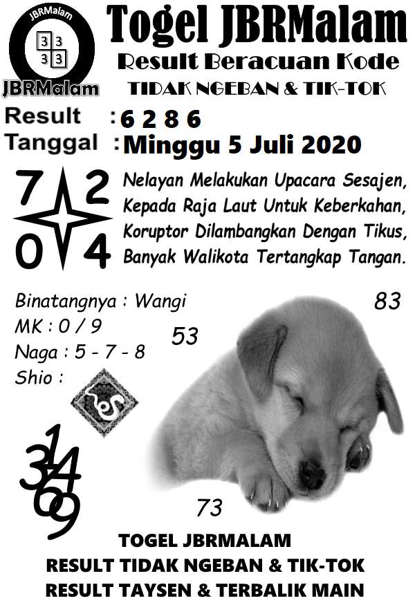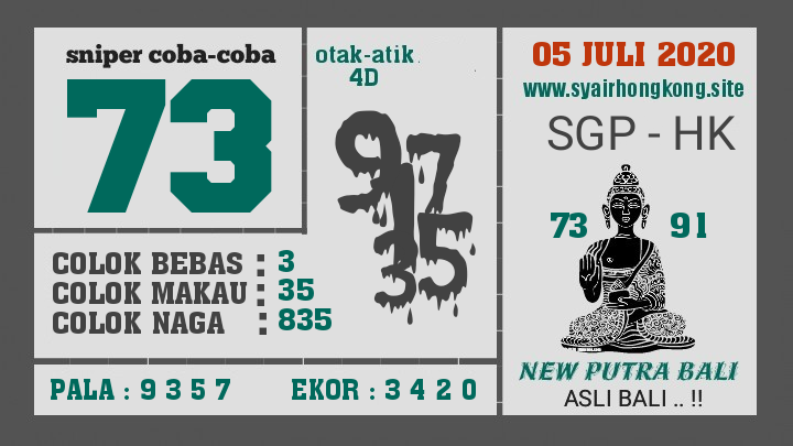 Prediksi Togel Singapura 5 Juli 2020 yang diterbitkan oleh Paitoonline.com diracik oleh para master prediktor togel dengan menggunakan rumus togel singapura yang telah teruji keakuratannya dan dipadukan dengan beberapa alat prediksi seperti angka taysen, angka unsur, angka mistik (mistik lama, mistik baru, index), buku mimpi untuk mendapatkan angka togel singapura jitu setiap harinya.