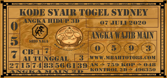 Dalam meracik Prediksi Togel Sydney Selasa 7 Juli 2020, tim prediktor juga mengambil referensi dari beberapa syair togel sdy ternama yang banyak dicari oleh kalangan pemain togel, referensi syair togel tersebut diantaranya syair kang prabu, syair kampleng, syair mbah semar, syair naga mas, syair pandawa, syair petruk, syair sentana, syair eyang bara, syair pak cik china, syair ratu, syair hanoman, syair pendekar koi, syair cepot SD, syair wayang thai dan masih banyak lagi lainnya.